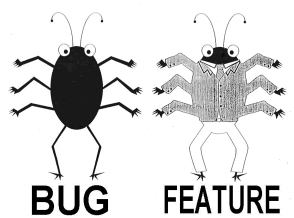 También es curioso notar que utilizado como verbo, «bug» se traduce como «molestar». Tanto los insectos como los defectos en el software tienen la capacidad de «molestar» a usuarios y desarrolladores. Muchos insectos tienen una gran capacidad para esconderse, así como los Bugs se esconden en el Software y tienen costos escondidos.